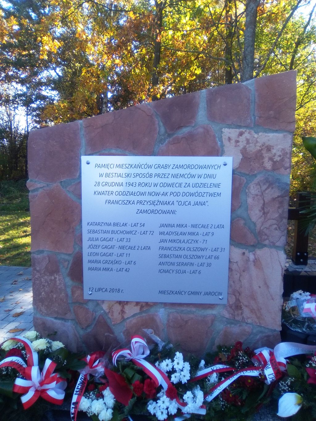 W wyniku realizacji zadania zostało upamiętnione wydarzenie z II wojny światowej, które miało miejsce na terenie gminy Jarocin w Grabie. Wybudowany pomnik ma przypominać lokalnej społeczności o trudnej przeszłości gminy. Pomnik i jego otoczenie to również wspaniałe miejsce do lekcji historii.