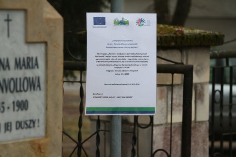 W jego ramach wykonano renowację historycznych pomników, polegającą na odtworzeniu stanu pierwotnego. Działania były nadzorowane przez Wojewódzkiego Konserwatora Zabytków. Dwa pomniki znajdujące się po prawej stronie przy wejściu na cmentarz, są poświęcone Hr. Aleksandrowi Maurycemu Wandalin Mniszech oraz Paulinie Marii Stubenvollova. Dwa pomniki znajdujące się po lewej stronie przy wejściu na cmentarz poświęcone są zasłużonym Proboszczom dla bielińskiego kościoła: Ks. Prałatowi Wojciechowi Harmacie i Ks. Prałatowi Wojciechowi Wanieliście. Wartość projektu: 49 815,00 zł.