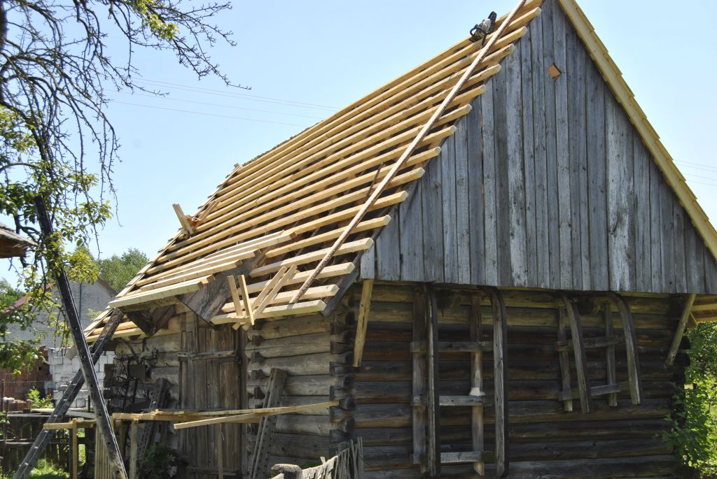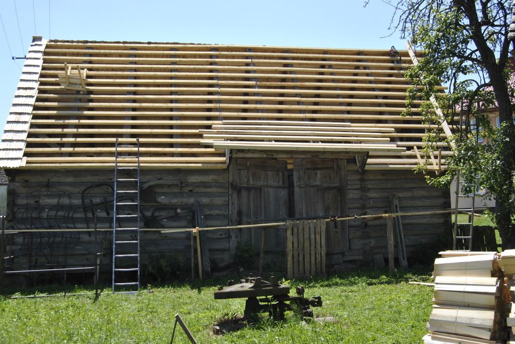 - Roboty ciesielskie i pokrywcze: ( więźba dachowa, wymiana ołacenia , pokrycie dachu gontem jodłowym).