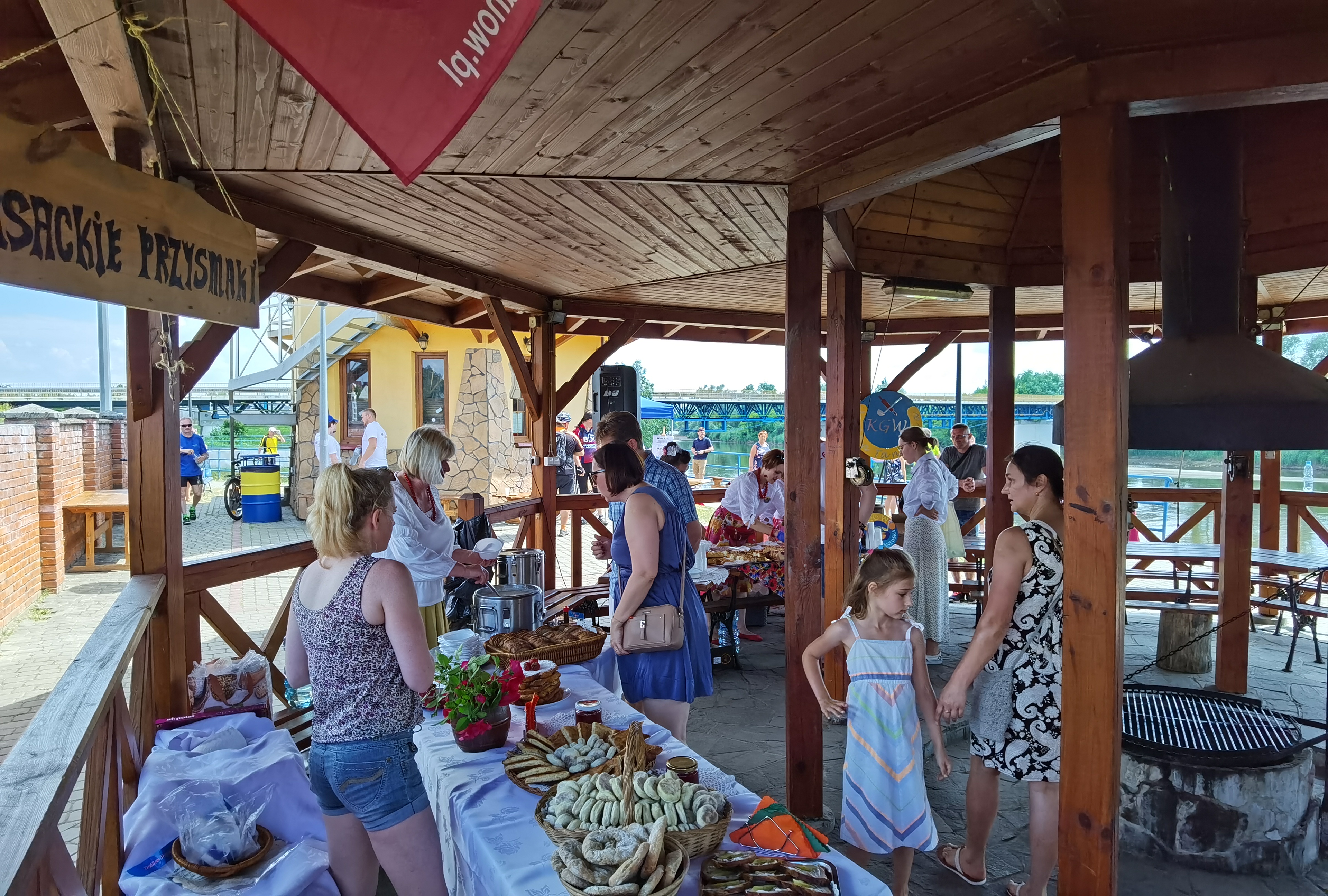 Wszyscy uczestnicy Jarmarku mieli okazję do spróbowania tradycyjnego „borszczu flisackiego”, „lizaków wigilijnych”, chleba flisackiego ze smalcem i chrupaczków – przygotowanych i serwowanych przez Panią Marię Łabęcką. Panie z Koła Gospodyń Wiejskich z Wólki Tanewskiej częstowały wieloma tradycyjnymi potrawami z kuchni ulanowskiej, m.in.: tradycyjnym ciastem „drożdżowelove z wiśniami”, proziakami z serem, chlebem ze smalcem i ogórkiem kiszonym oraz szarlotką z dynią. Dzięki uprzejmości Pań każdy mógł zapoznać się z recepturą i procesem przygotowania prezentowanych przysmaków.